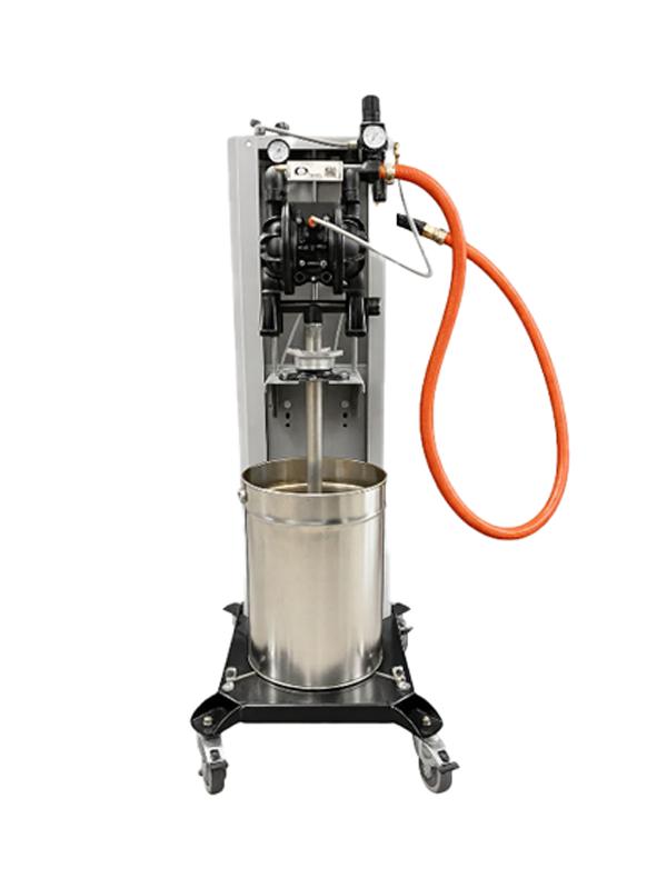 På fedtpressen blev der monteret en 1/2" membranpumpe, ATEX-godkendt og med et frit flow på op til 54 l/min. Pumpen er nøje udvalgt og dimensioneret til den specifikke væsketype og sikrer en kontrolleret, skånsom og stabil dosering – også ved kontinuerlig drift.