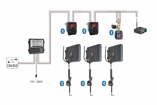 Oliepistolen har en integreret magnetventil og RFID-modul, som sikrer præcis dosering og sikker identifikation. Tilslutningen sker helt trådløst, hvilket giver en fleksibel og enkel installation.